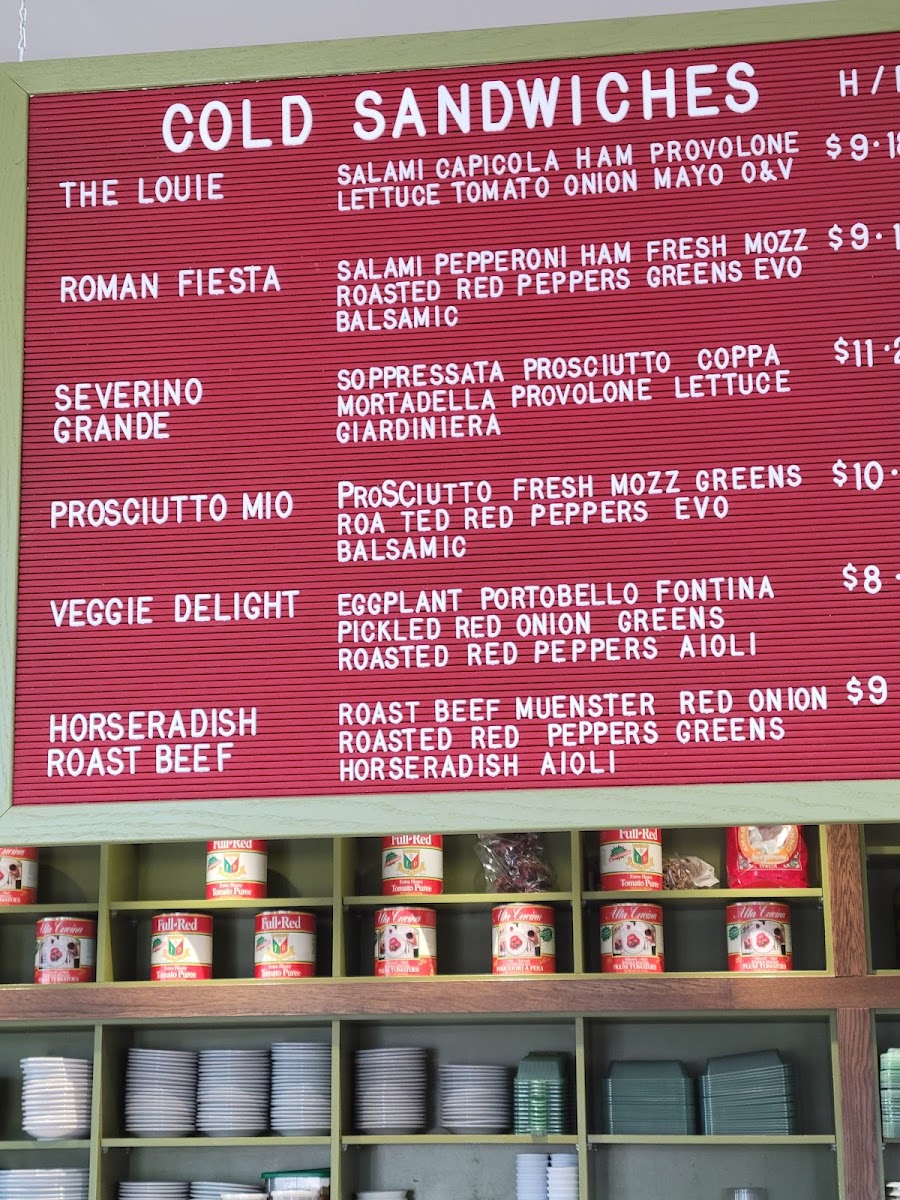 Shaved Mortadella, Genoa Salami, Hot Capicola, Pit Ham, Salami, Swiss, American & Provolone Cheese, Olive Relish, Seeded Boule